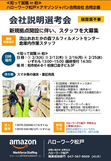 問合わせ先:ハローワーク松戸 職業相談第1部門