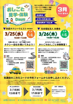 春休み開催!小学4・5年生対象!「おしごと見学・体験Days」のお知らせ