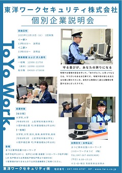 12月16日(火)開催「東洋ワークセキュリティ株式会社 個別企業説明会」のお知らせ