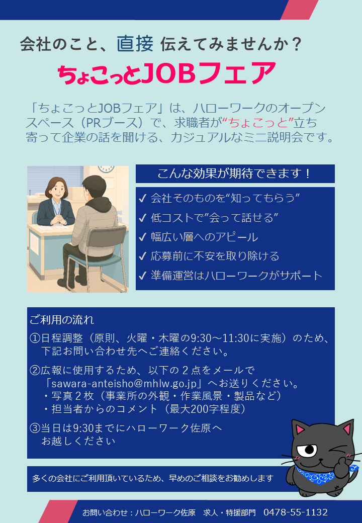 ※ハローワーク佐原に求人申込みをしている事業所が対象です
