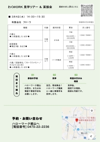 3月4日(水)開催「わくWORK見学ツアー 有限会社 フローラ」のお知らせ