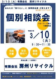 【ハローワーク館山】3月10日(火)開催「有限会社 房州リサイクル 個別相談会」のお知らせ