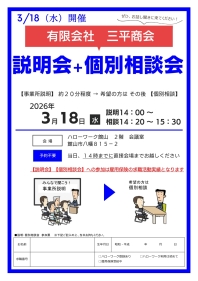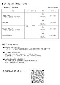 【ハローワーク館山】3月18日(水)開催「有限会社 三平商会 説明会+個別相談会」のお知らせ