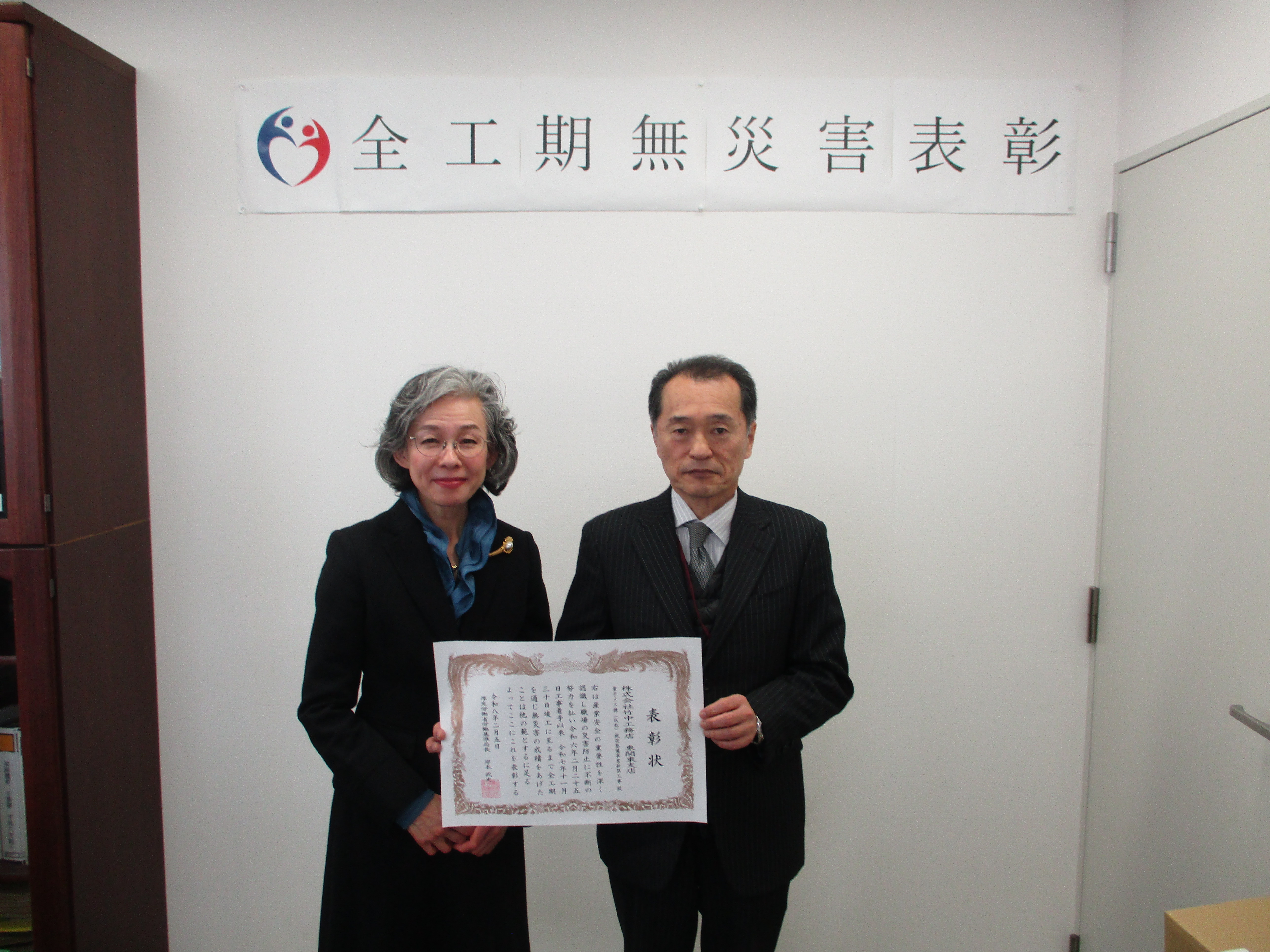| 千葉労働基準監督署長(左) 株式会社竹中工務店東関東支社 上記現場所長(右) |