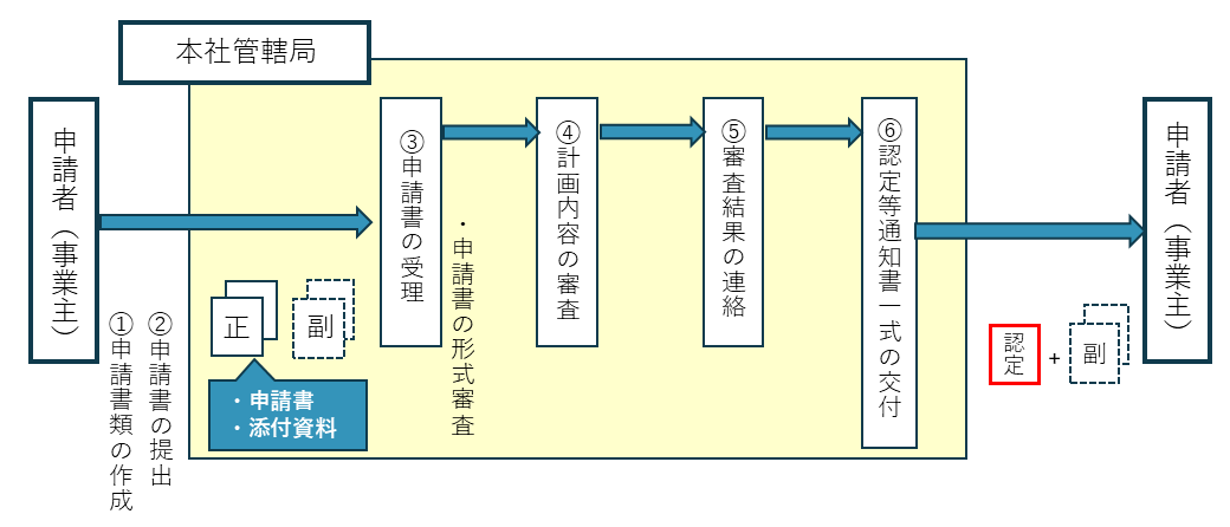 ・本社を管轄する雇用・環境均等室へ申請書類一式をご提出ください。