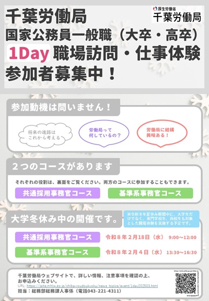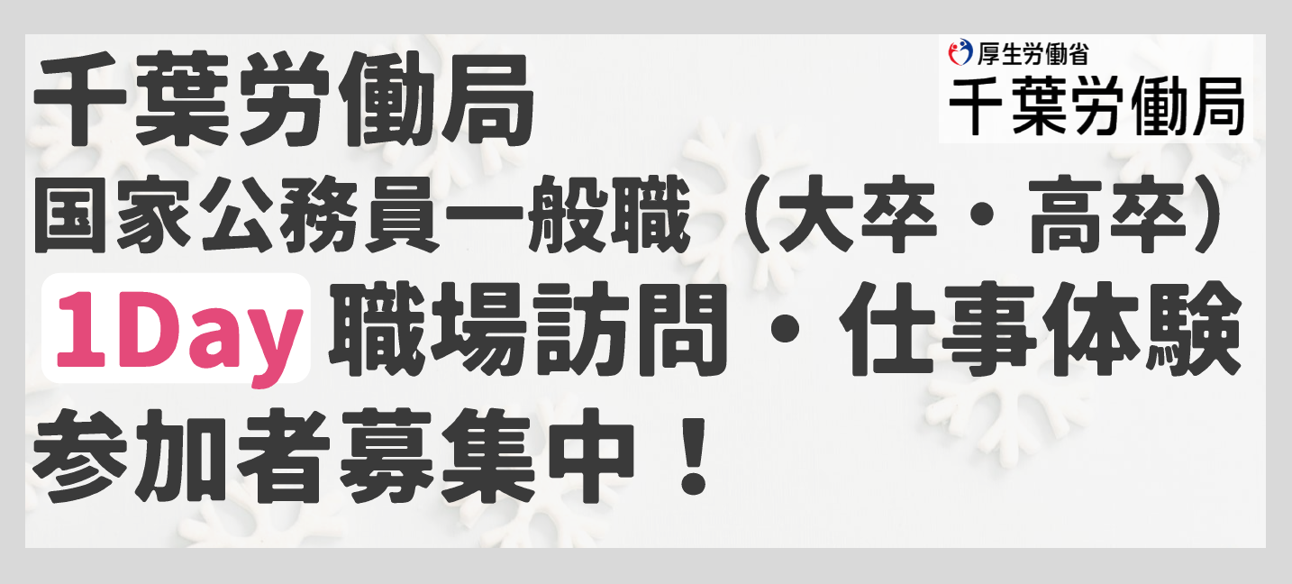 - 2026年2月開催!千葉労働局国家公務員一般職(大卒・高卒)「1Day職場訪問・仕事体験」参加者募集!【要予約】