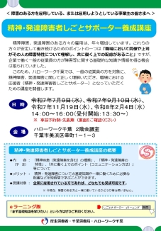 - 【ハローワーク千葉】「精神・発達障害者しごとサポーター養成講座」の開催について