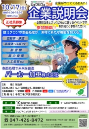 - 10月17日(金)「採用担当者とざっくばらんに話せる企業説明会 企業がやってくるDAY!」開催のお知らせ(ジョブカフェちば)