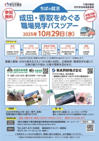 - 10月29日(水)「ちばの就活 成田・香取をめぐる職場見学バスツアー」開催のお知らせ(若年者地域連携事業)