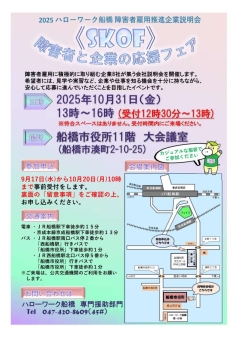 - 「障害者と企業の応援フェア≪SKOF≫障害者雇用推進企業説明会」を開催します(ハローワーク船橋)