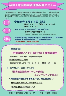 - 令和8年1月14日(水)、障害者理解促進セミナーを開催します【千葉労働局】