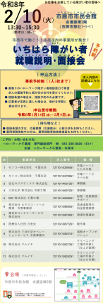 - 【ハローワーク千葉南】2月10日(火)いちはら障がい者就職説明・面接会 開催のお知らせ
