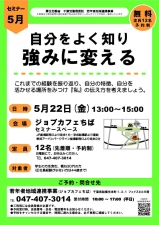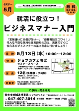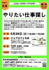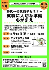 - 5月11日(月)・13日(水)・18日(月)・22日(金)・26日(火)開催 セミナーのお知らせ(若年者地域連携事業)