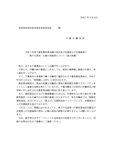 - 最低賃金引上げと業務改善助成金等の周知について労使団体に協力を依頼しました