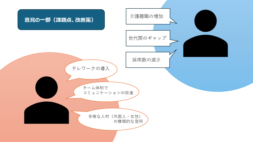 話し合いの中では人材の確保や定着、国籍・性別を問わない多様な人材の活用、テレワークや時短勤務導入での労働条件改善など様々な意見が出され、熱のこもった議論となりました。