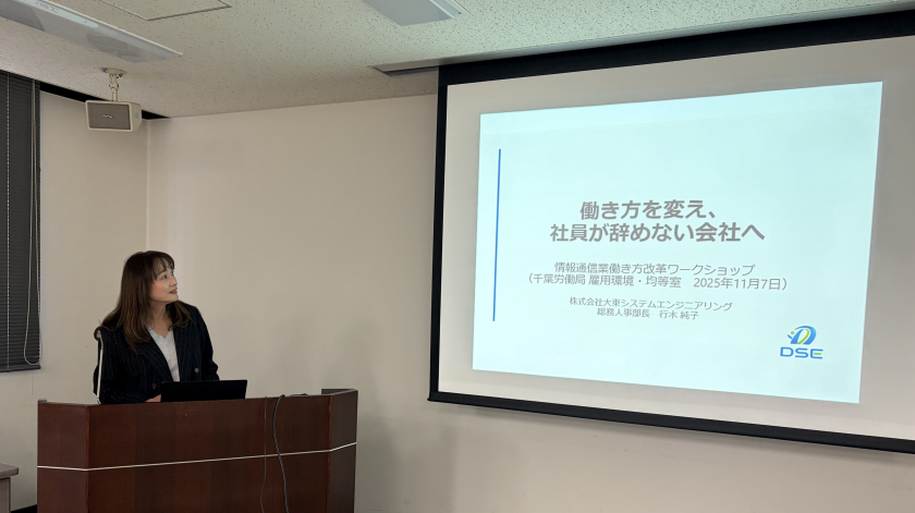 第一部の「事例発表」では、株式会社 大東システムエンジニアリング(千葉市美浜区)の総務部長 行木純子様よりご講演をいただきました。
