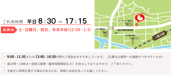 ※年末年始(上記の期間)、ハローワークは閉庁となりますので、