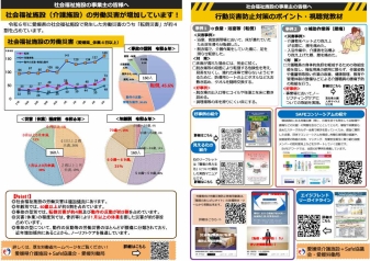 愛媛県小売業+Safe協議会及び愛媛県介護施設+Safe協議会では、労働災害発生状況及び行動災害防止対策のポイントをまとめたリーフレットを作成しています。ダウンロードすることができますので、職場の安全への取組にご活用ください。