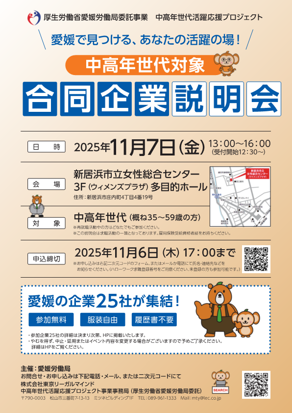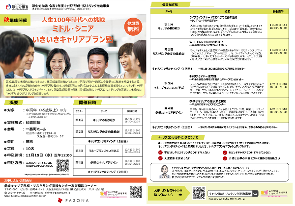 愛媛県のハローワークでは、中高年世代(ミドルシニア)の方々に対して様々な支援を無料で行っています。