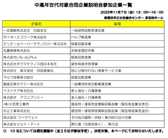 ☆ 中高年世代を対象とした合同企業説明会を開催します。