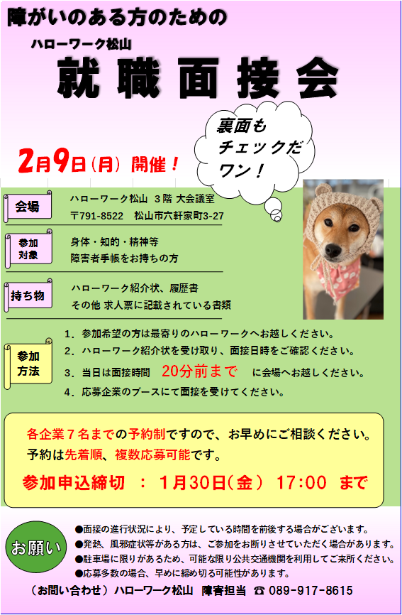 ハローワーク松山 令和7年度第2回障害者就職面接会の開催について