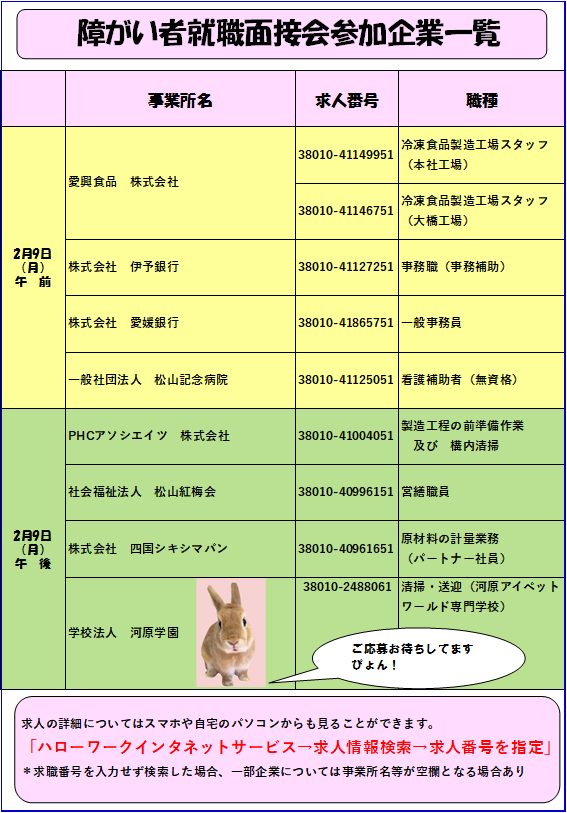 ハローワーク松山 令和7年度第2回障害者就職面接会の開催について