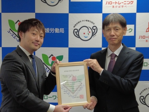 【12/8】新規認定2社の「ユースエール認定企業」認定通知書交付式を行いました!