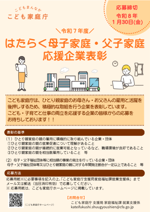 - 令和7年度「はたらく母子家庭・父子家庭応援企業表彰」の公募について