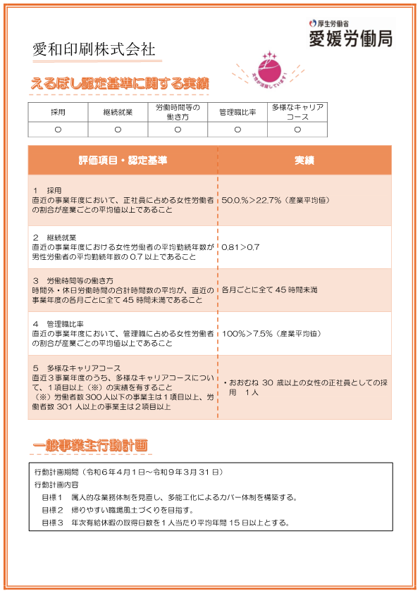 愛和印刷株式会社の公表情報はこちら(女性活躍推進企業データベースに遷移します。)