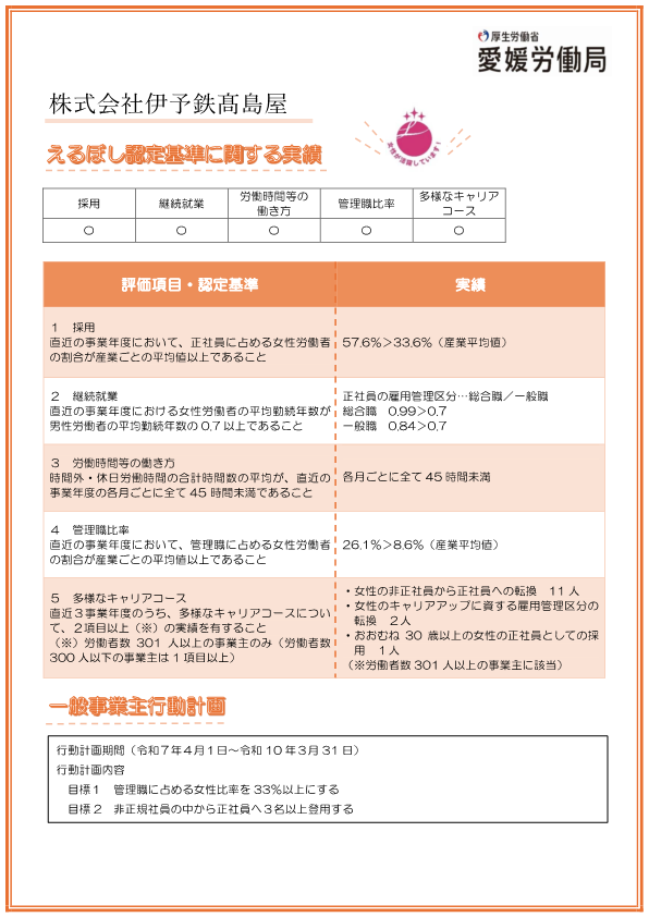 株式会社伊予鉄髙島屋の公表情報はこちら(女性活躍推進企業データベースに遷移します。)