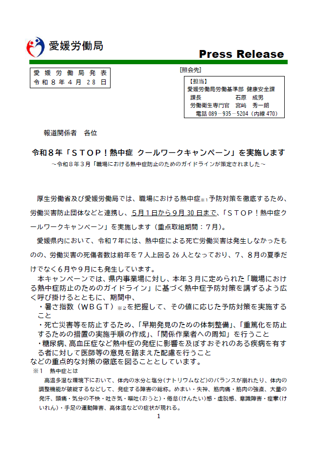 - 【報道発表】令和8年「STOP!熱中症 クールワークキャンペーン」を実施します