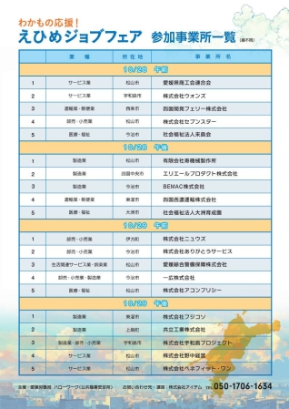 わかもの応援!~えひめジョブフェア~開催案内及び参加予定事業所一覧リーフレット【1,681KB】