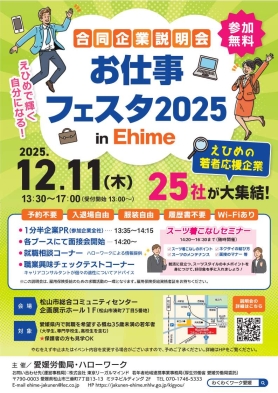 - 【令和7年12月11日(木)】~えひめで輝く自分になる!~ お仕事フェスタ 2025 ㏌ Ehime (合同企業説明会)開催