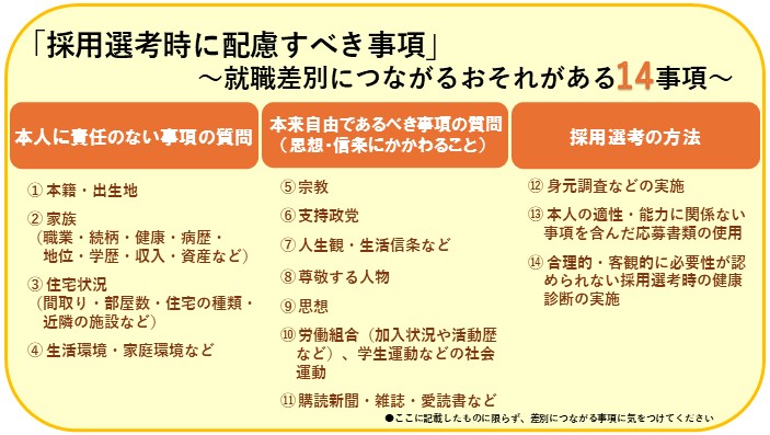 かれましては、公正な採用選考の考え方についてご理解いただきまして、差別のない公正な採用