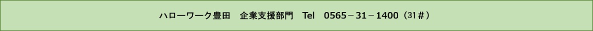 お問い合わせ先 : 豊田公共職業安定所 企業支援部門 雇用指導官 梅村 電話 0565-31-1400(部門コード 31#)