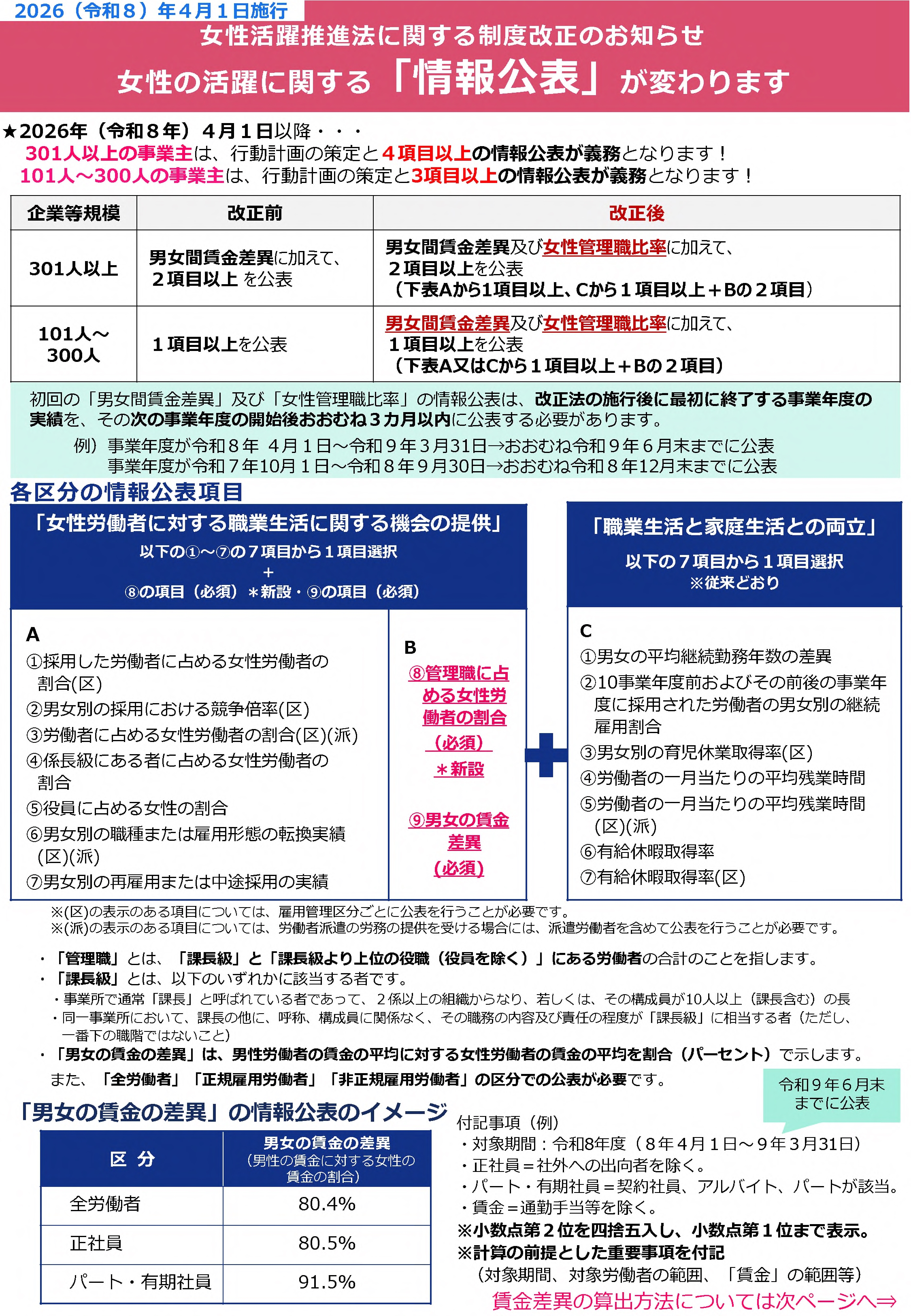 従業員301人以上の企業は男女の賃金差異の情報公表が必要です(リンク)NEW