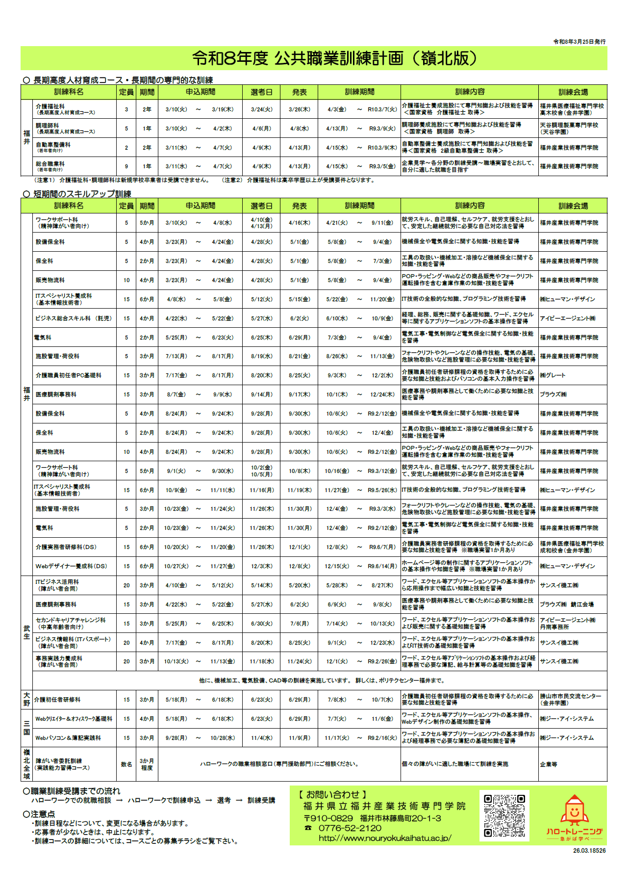 (バナーをクリックすると、訓練情報専用ページに遷移します。)
