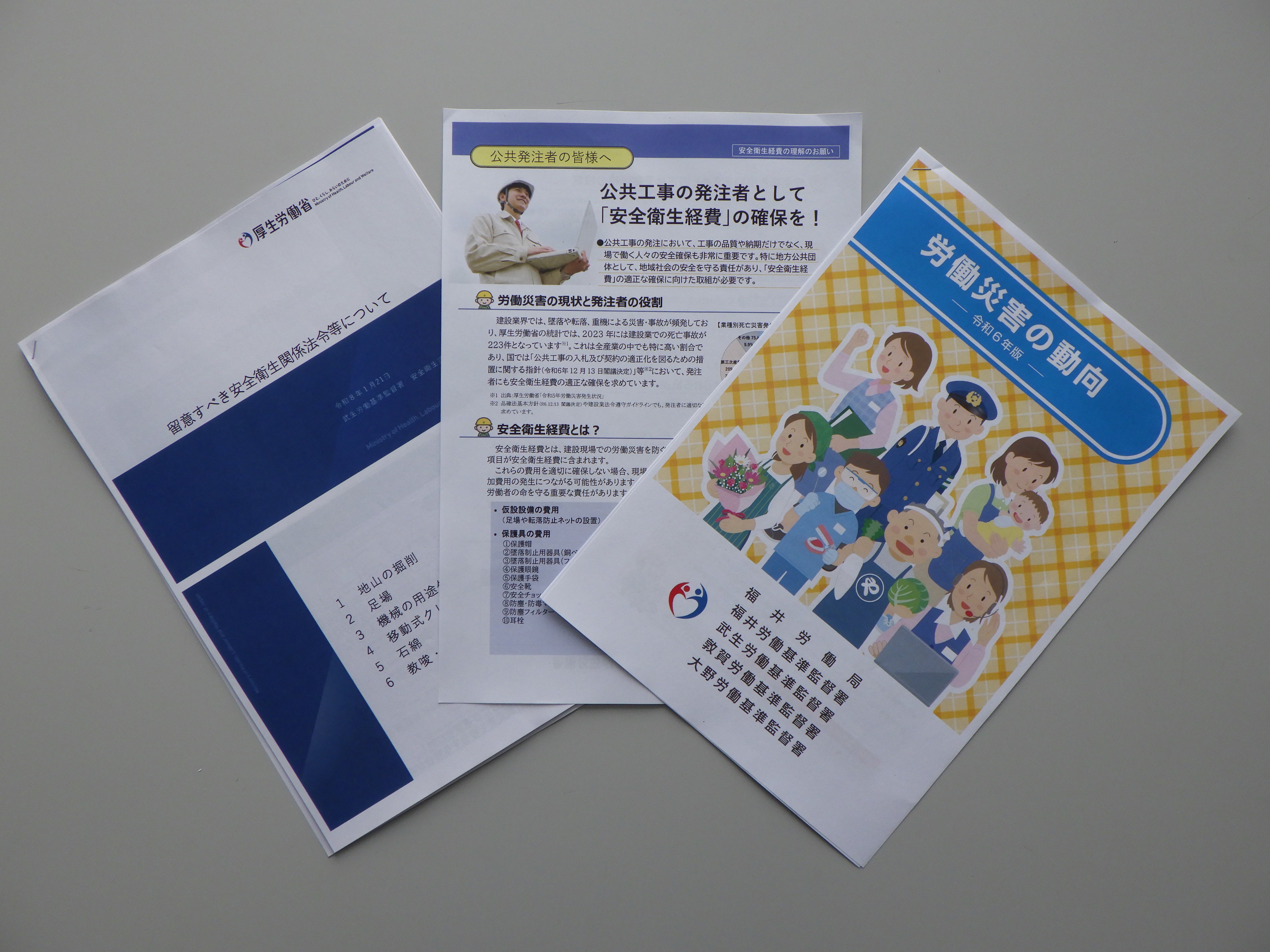 研修会では、冒頭、武生労働基準監督署の服部署長より令和6年の労働災害の動向について、青山安全衛生課長より工事発注時に配慮すべき事項として安全衛生経費の適切な積算や適切な工期の設定について、その後安全衛生係の斎藤監督官より地山の掘削、足場、石綿等の労働安全関係法令について説明を行いました。