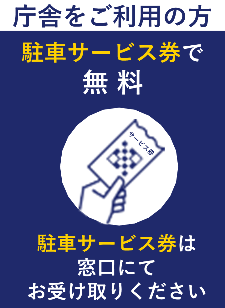 ・開庁日の庁舎の利用者は、各官署の受付で無料サービス券の交付を受け、精算機で精算してください。(当日のみ有効、車のナンバー入力が必要です。)