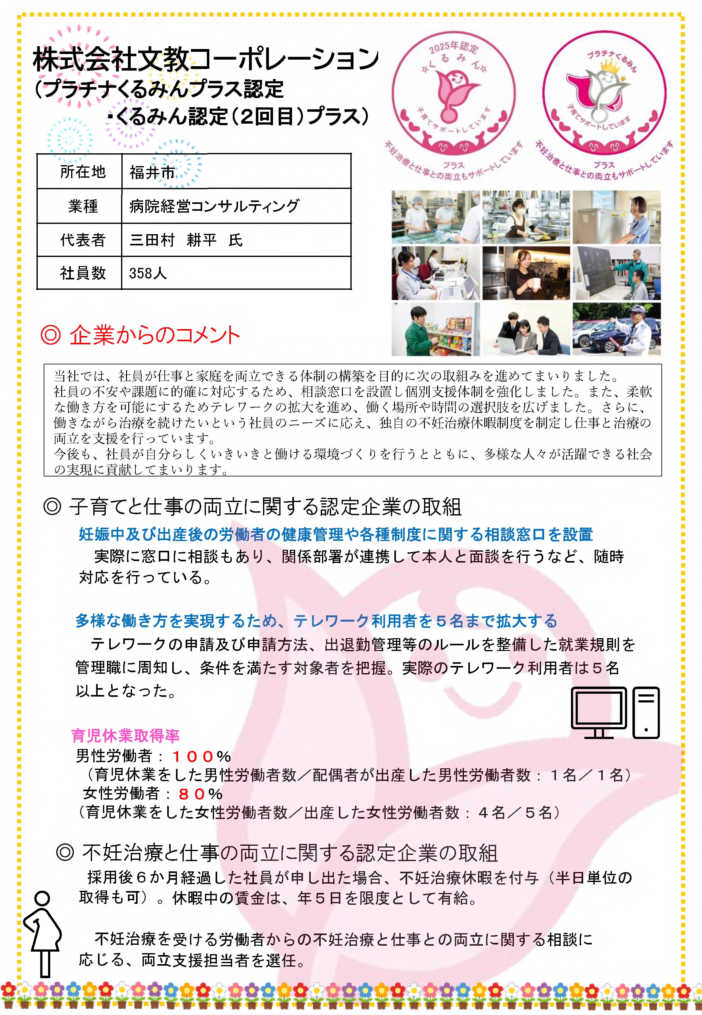 次世代育成支援対策推進法に基づき、株式会社文教コーポレーションを