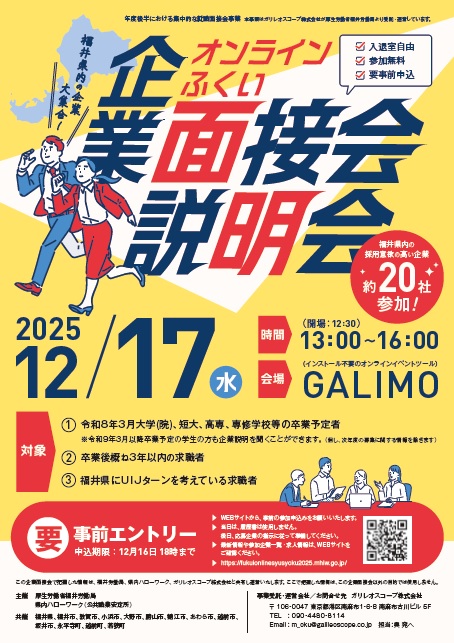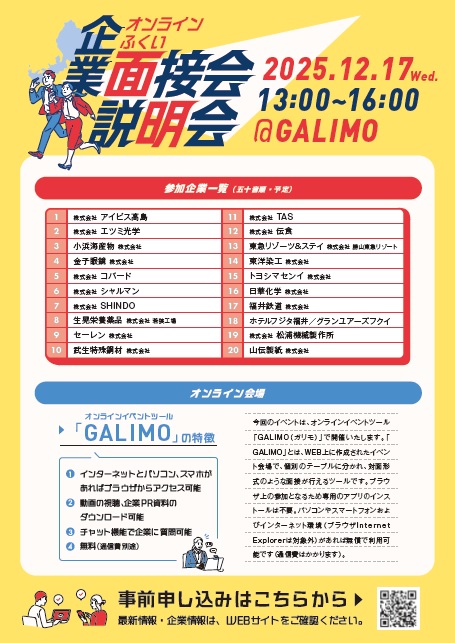 - 令和7年度「オンラインふくい企業面接会・説明会」を開催します!