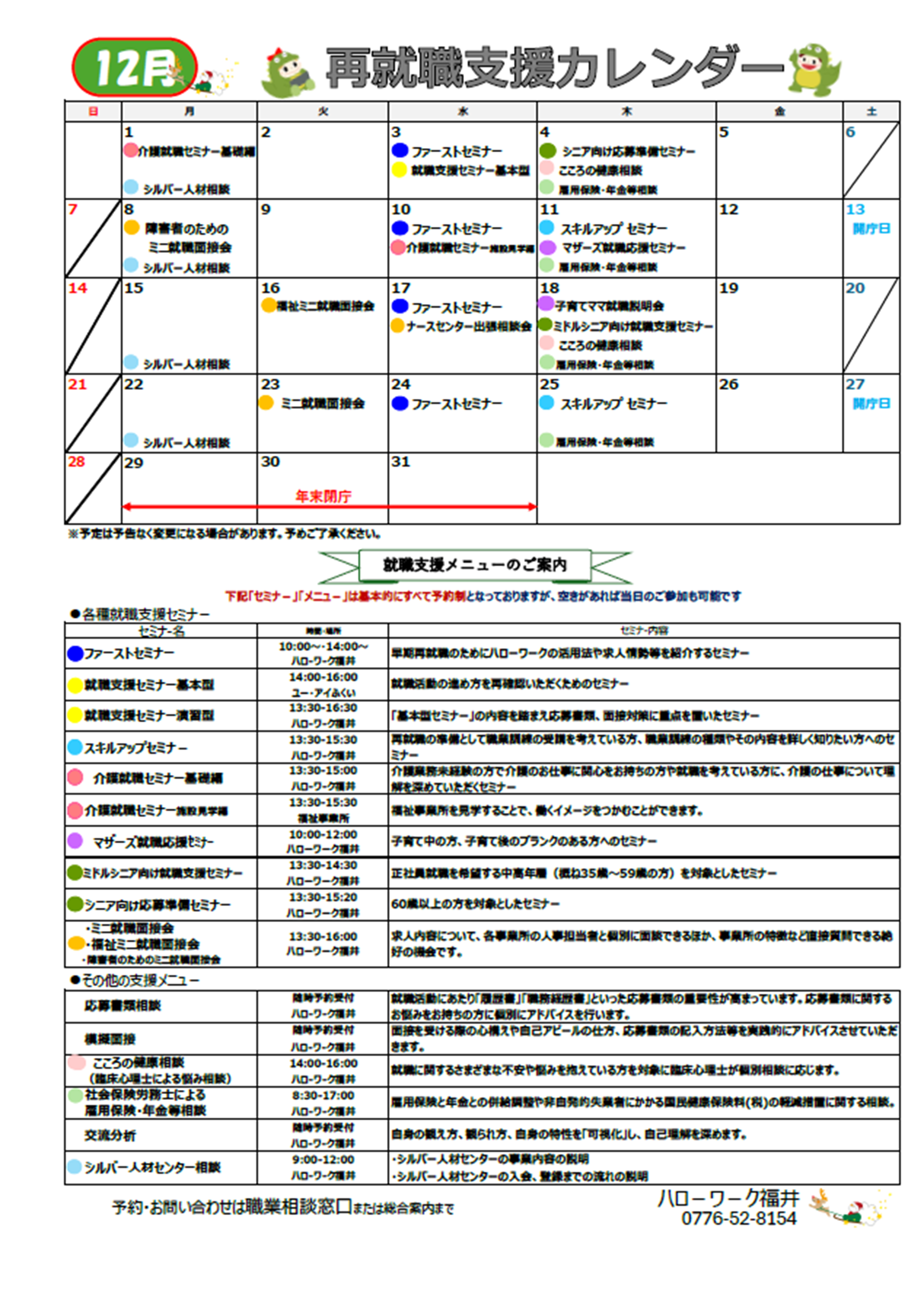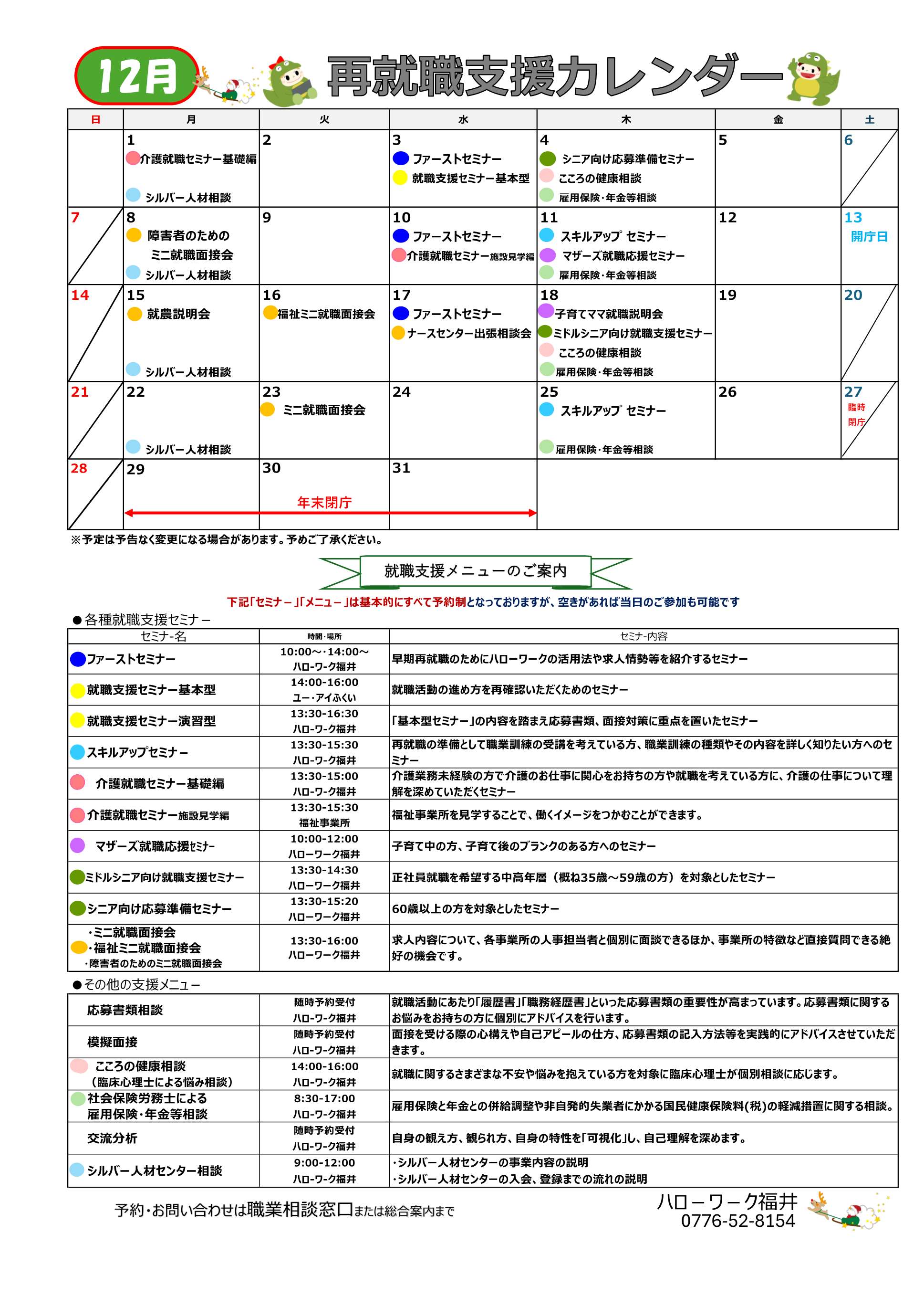 ●再就職支援カレンダー(令和7年12月)(PDF)←コチラをクリック