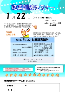 ●1/22(木) 職業訓練セミナー(Webパソコン&簿記実践科)