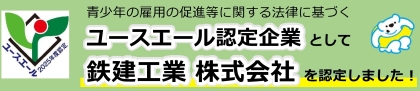 ◆ユースエール認定企業として「鉄建工業 株式会社」を認定しました。