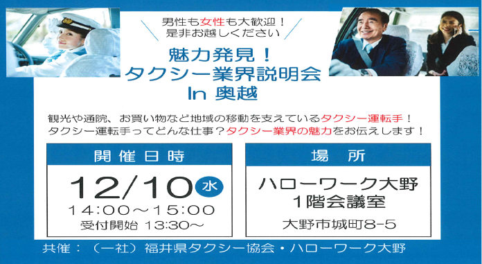 ・奥越にお住まいの方は、ハローワーク大野へお越しください。