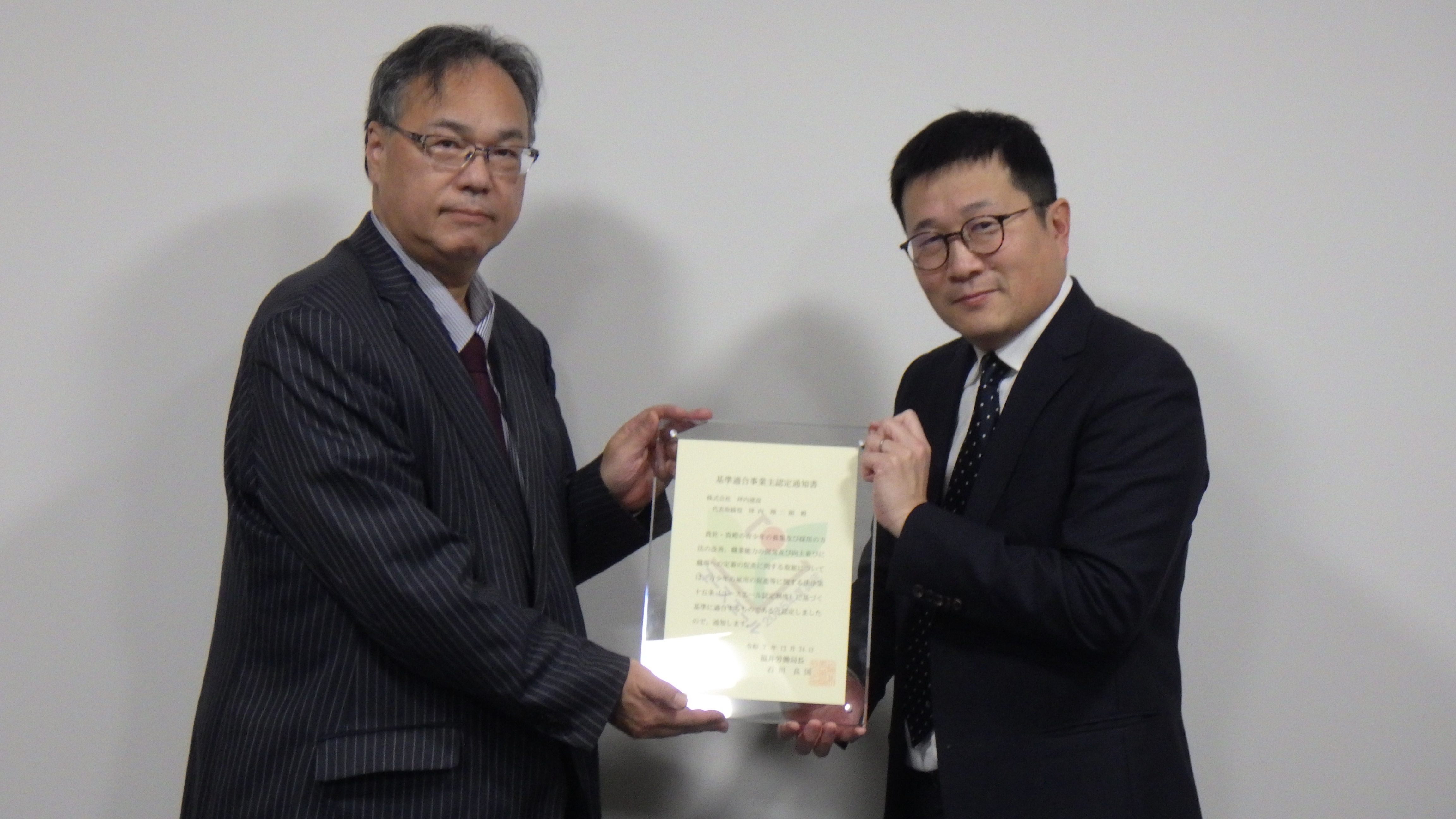 右から株式会社 坪内建設 坪内代表取締役、自閑 大野公共職業安定所長