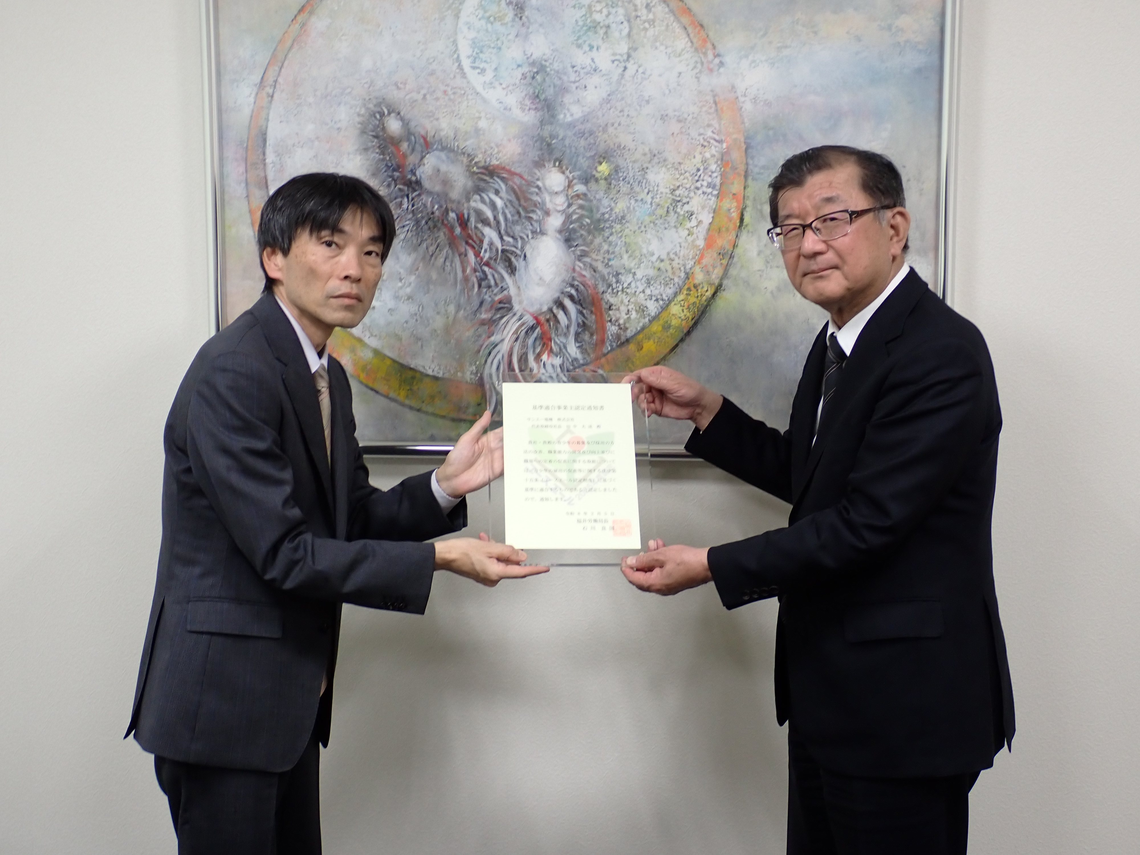 右からサンエー電機 株式会社 田中代表取締役社長、山下 武生公共職業安定所長