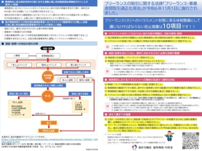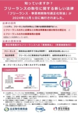 「特定受託事業者に係る取引の適正化等に関する法律」(フリーランス・事業者間取引適正化等法)が令和6年11月1日に施行されました。