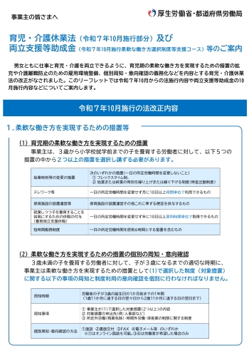 ▶ 育児介護休業法及び両立支援等助成金等のご案内(リーフレット、上部画像)