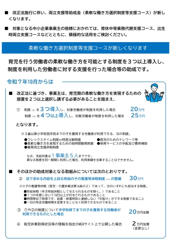 ◎令和7年10月から柔軟な働き方選択制度等支援コースが新しくなります!
